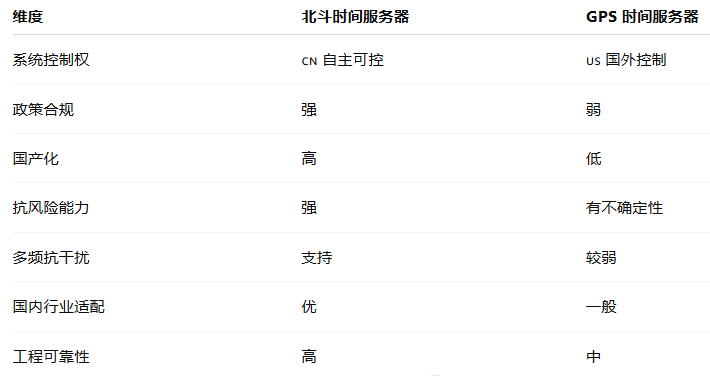 北斗時間服務器在安全性、可控性和政策合規性方面全面優于傳統 GPS 授時方案,